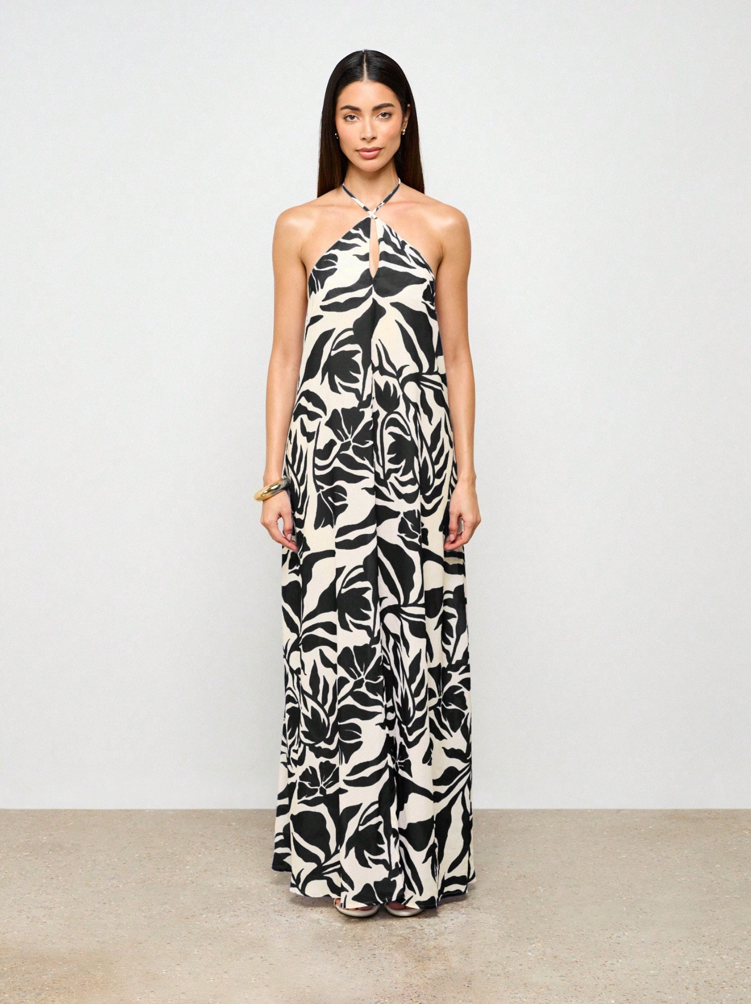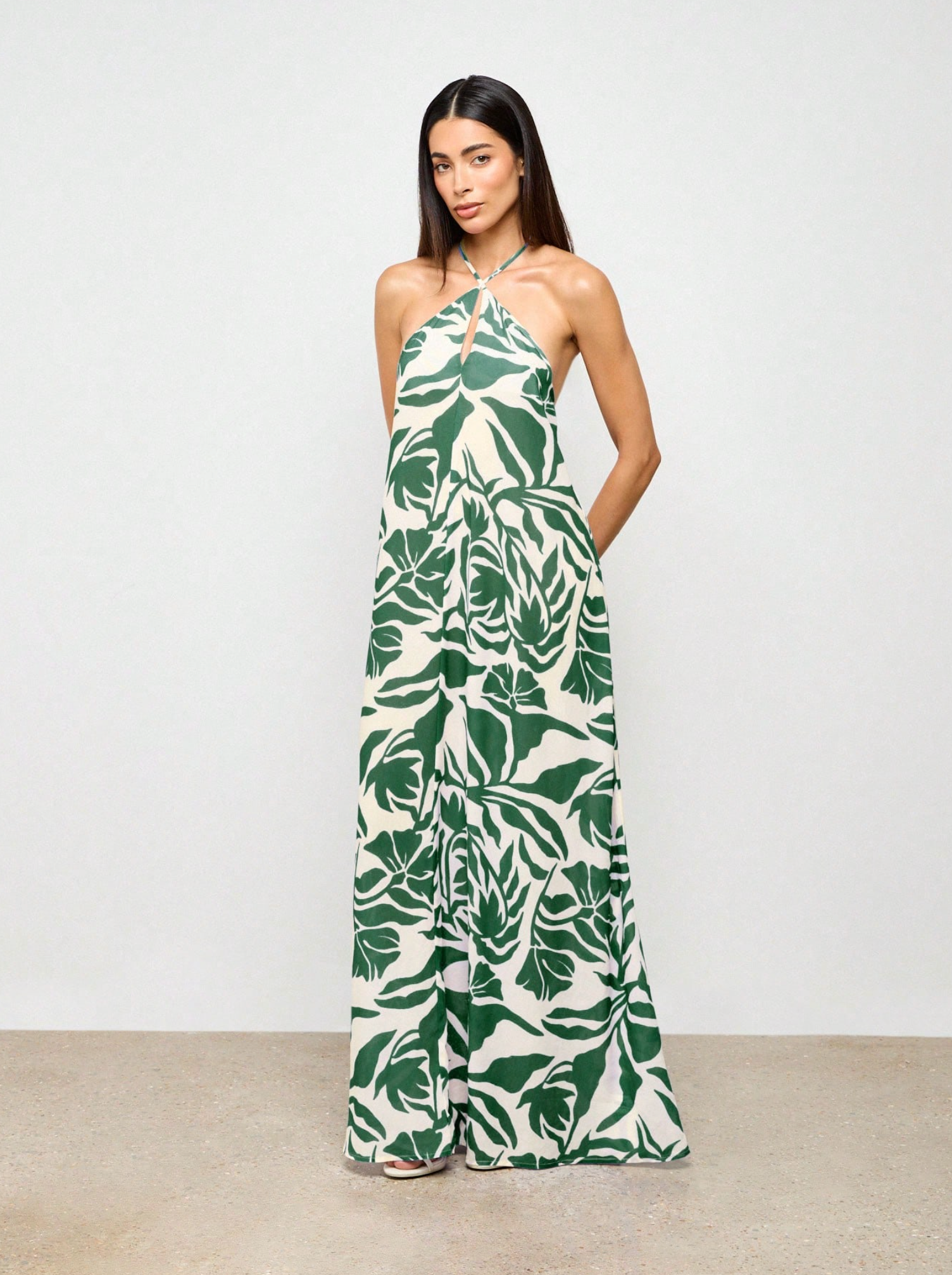 Abstract Palm Leaf Maxi Beach Dress