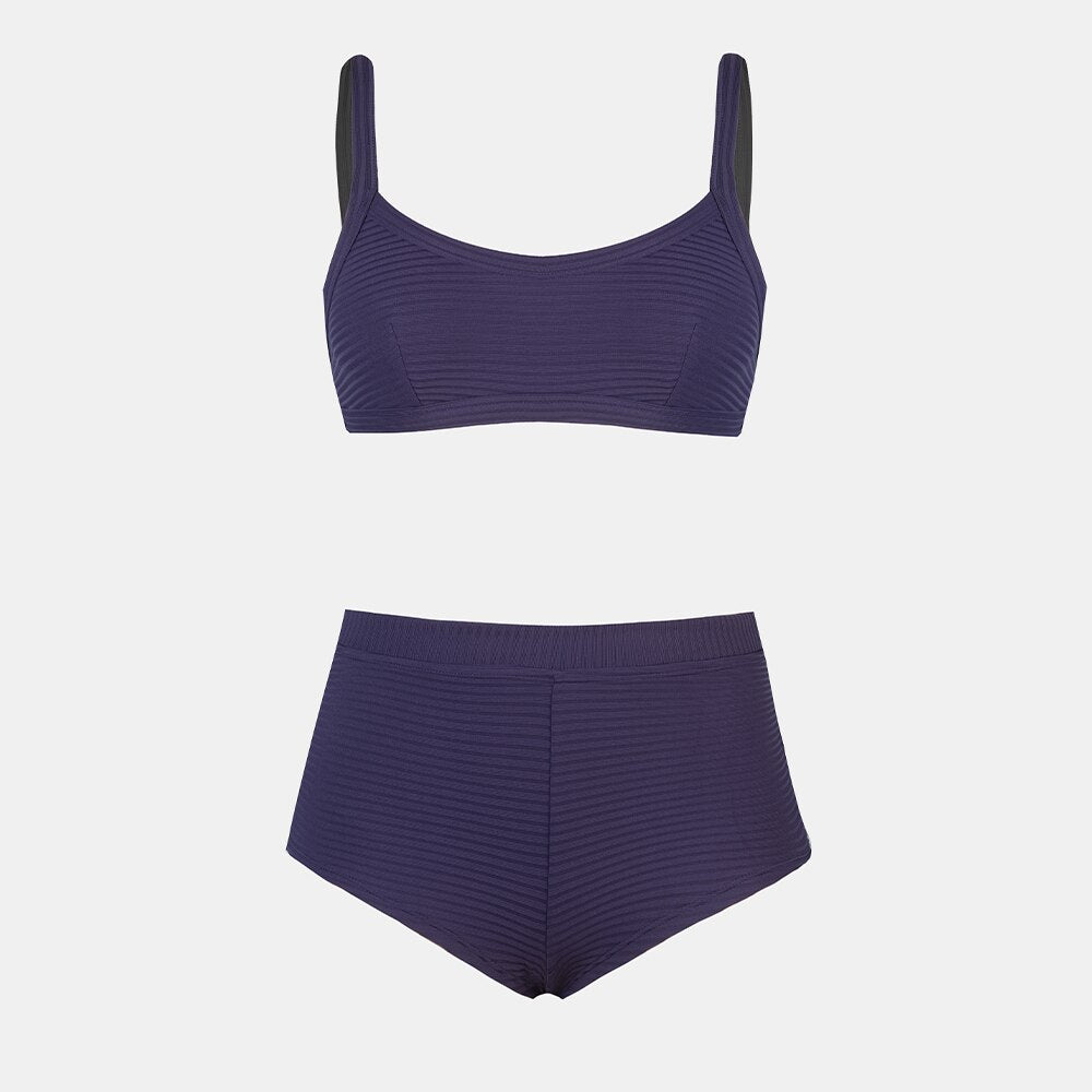 Cupshe - Purple Ribbed Scoop Neck Bikini Shorts Sets