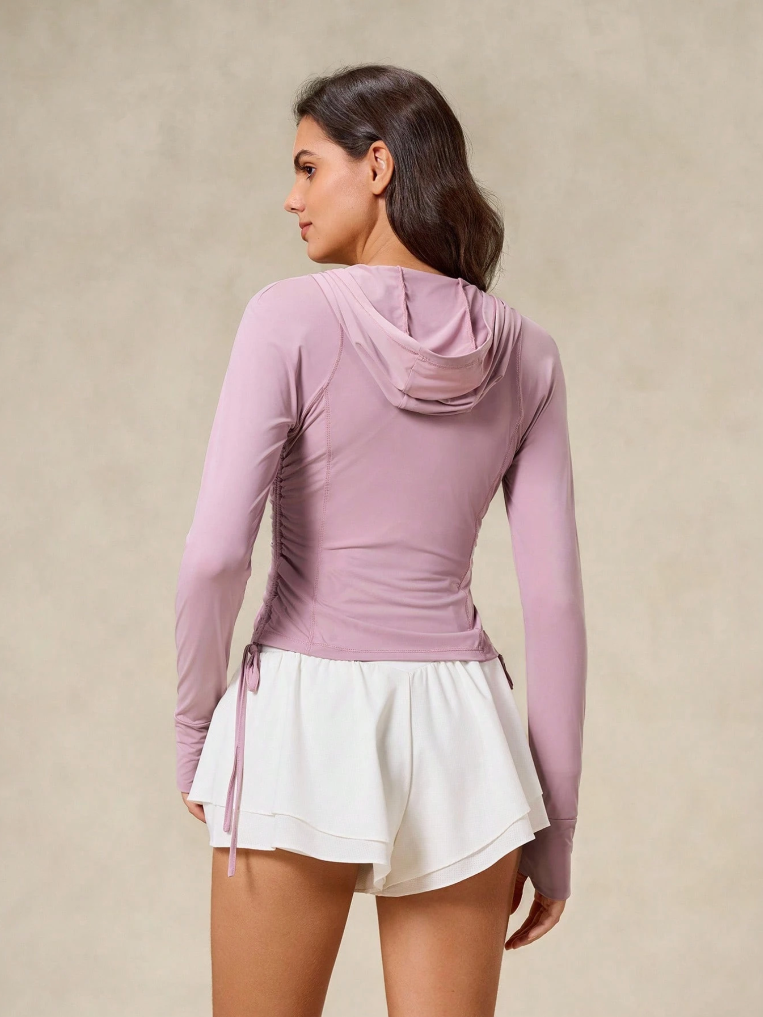 Your perfect partner for sunny days! Designed with UV protection and a silky-soft touch, customizable adjustable drawstring, this jacket keeps you cool and comfy whether you're playing a match of tennis, on a jog or just out and about. Stay protected, feel fabulous!