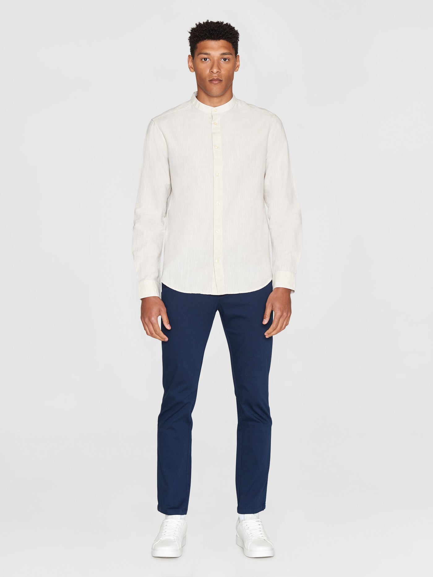 True - Knowledge Cotton Apparel Linen Chinese Collar Shirt - SK-KOA-LCCS